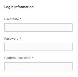 Required fields are marked with a red asterisk (*).Username Guidelines