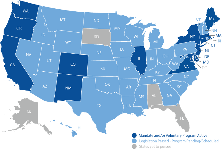 At TRA we want to help close the retirement access gap, we’re incredibly excited by these new developments and the renewed interest in retirement savings. To help you decipher these mandates, we’ve broken them down by state.